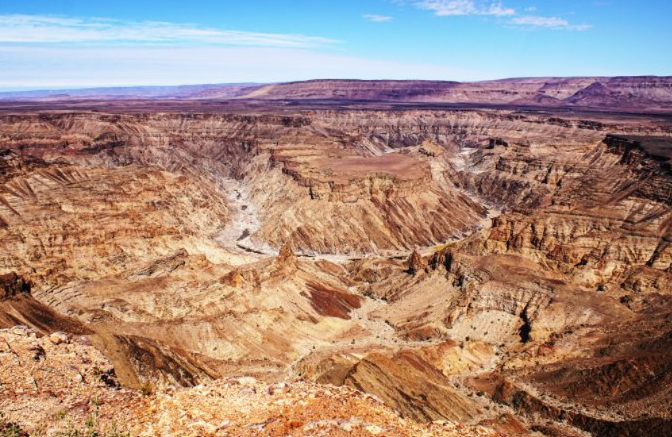 5. Tag: Nach einem stärkenden Frühstück starten wir unsere heutigen Ausflug zum Fish River Canyon, wo wir einen Spaziergang entlang des Canyonrands unternehmen. Während die Sonne den Himmel in leuchtendes Orange und Purpur taucht, genießen wir ein erfrischendes Getränk und lassen uns von der Ruhe und Weite der Landschaft verzaubern.
